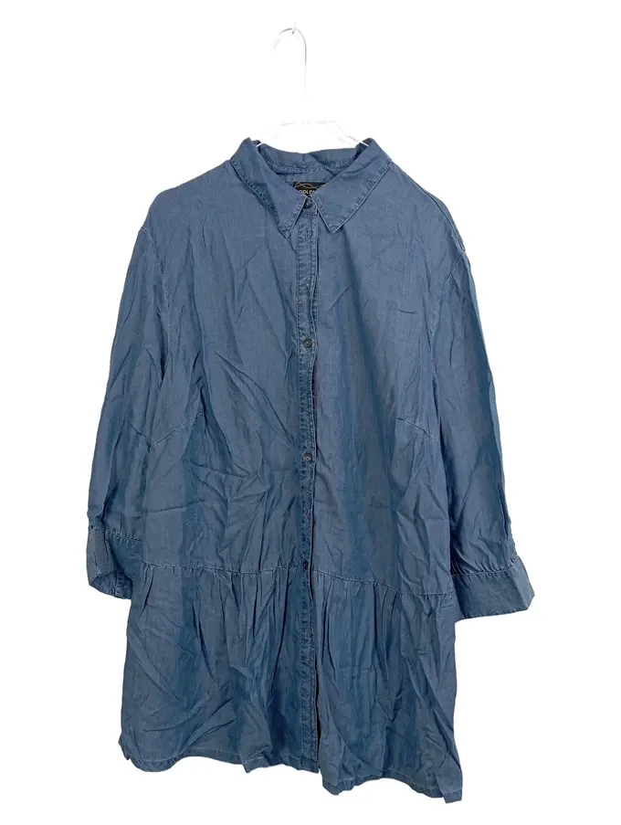 GOLDNER Jeanskleid Damen Lyocell Midikleid Hemdblusenkleid Blau 46