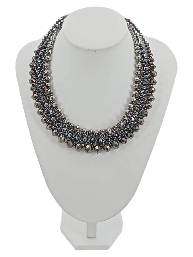 Halskette Damen Elegant Silber Metall Glas Perlen Strass Collier Kette