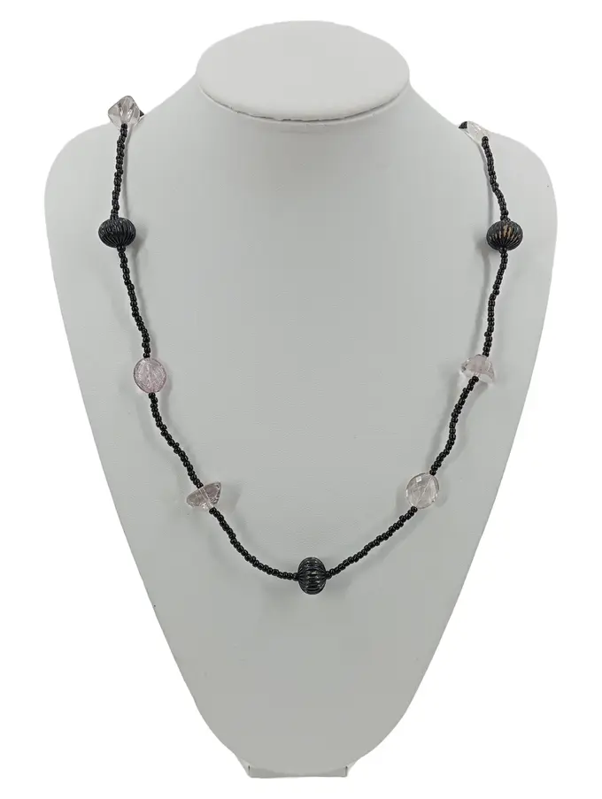Halskette Damen Schwarz Elegant Perlen Metall 90cm Kette Modeschmuck