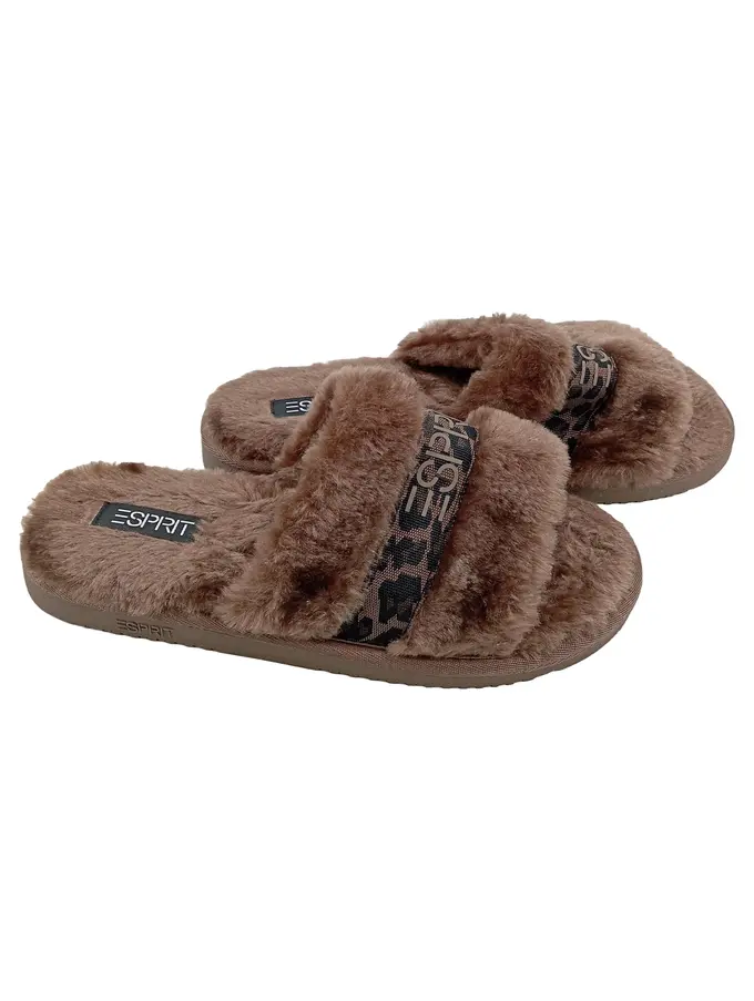 Hausschuhe Damen Gr. 40 Braun Komfortabel Fluffy Pantoletten