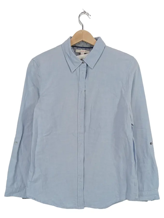 Hemdbluse Damen Blau Langarm Klassisch Baumwolle Gr. 40