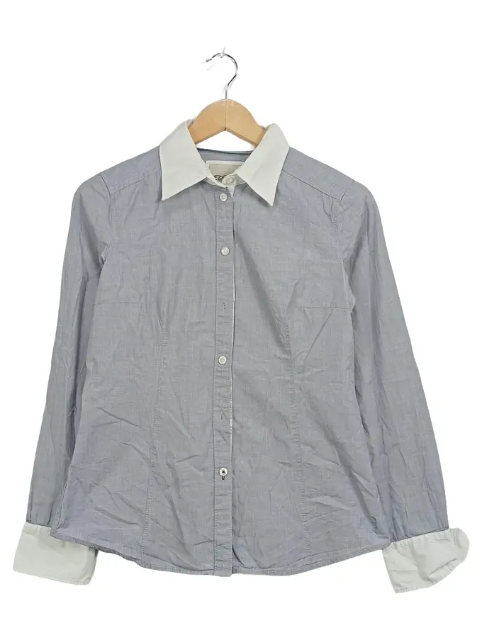 Hemdbluse Damen Gr. 36/S Grau Weiß Kragen Baumwolle Klassisch