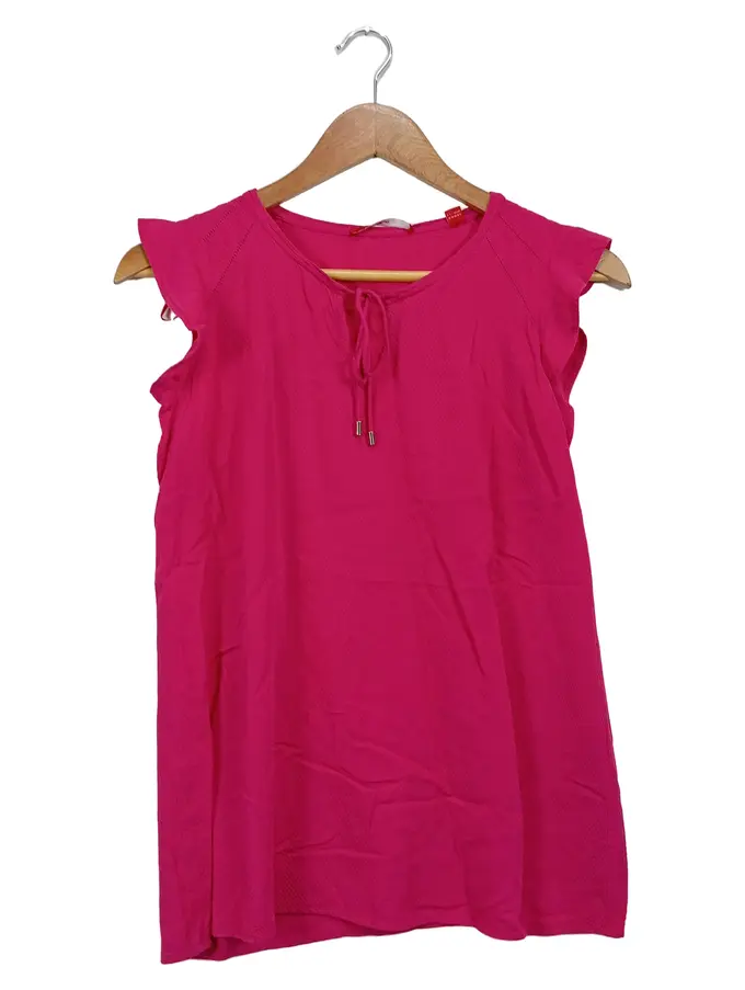 Hemdbluse Damen Gr. 36/S Pink Strukturmuster Rüschen Freizeit