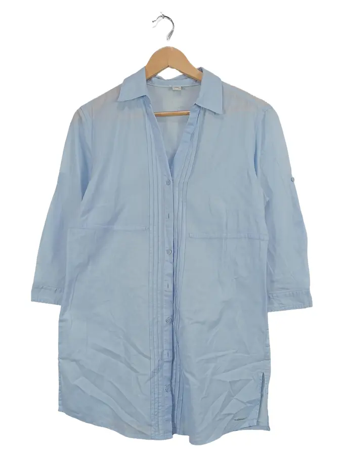 Hemdbluse Damen Gr. 38 Hellblau 3/4-Arm Longbluse Casual