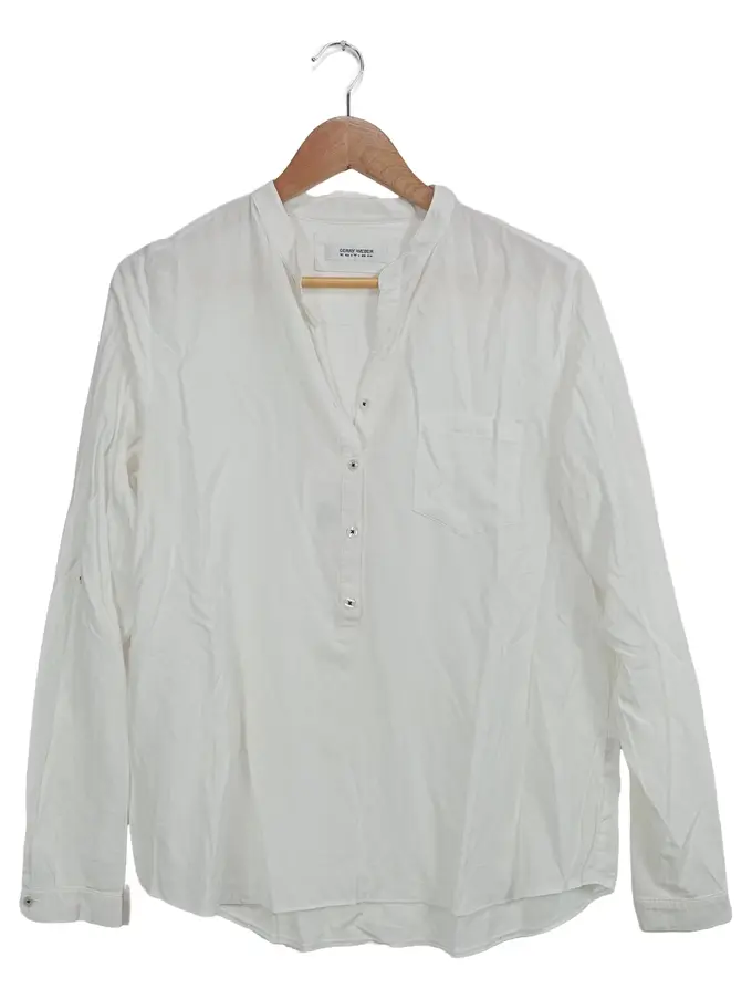 Hemdbluse Damen Gr. 38/M Weiß Basic Langarm Bluse