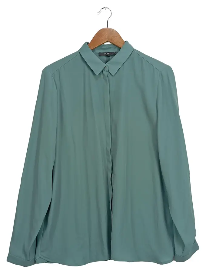 Hemdbluse Damen Gr. 40 Türkis Klassische Langarm Bluse