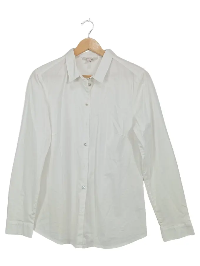 Hemdbluse Damen Gr. 40 Weiß Langarm Baumwolle Klassisch