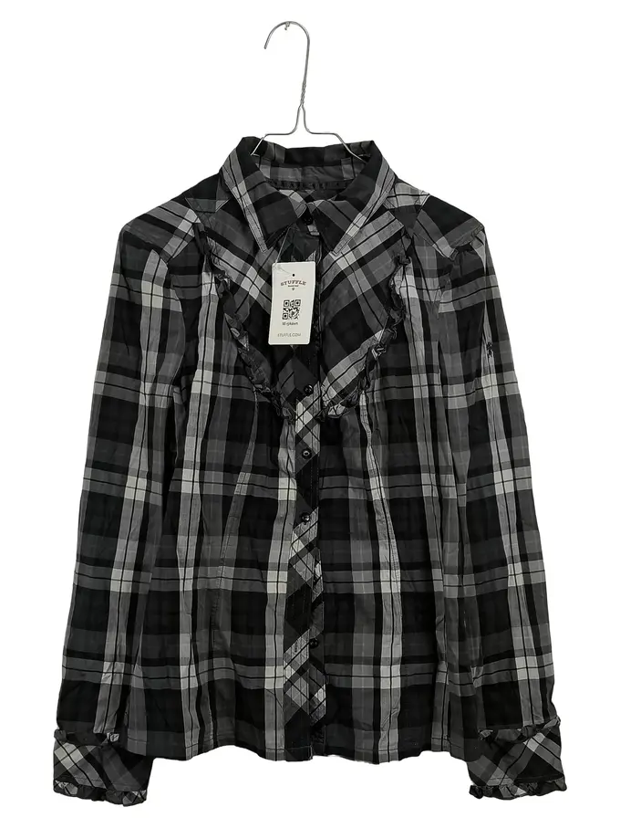 Hemdbluse Damen Gr. M kariert grau schwarz Rüschen