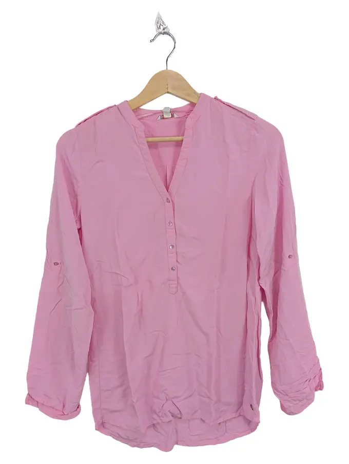 Hemdbluse Damen Langarm Viskose Uni Pink Gr. 32 XXS Freizeit