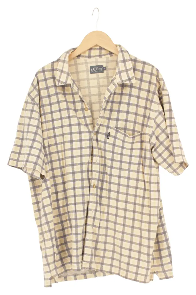 Hemdbluse Damen XL Beige Kariert Casual Vintage Kurzarm