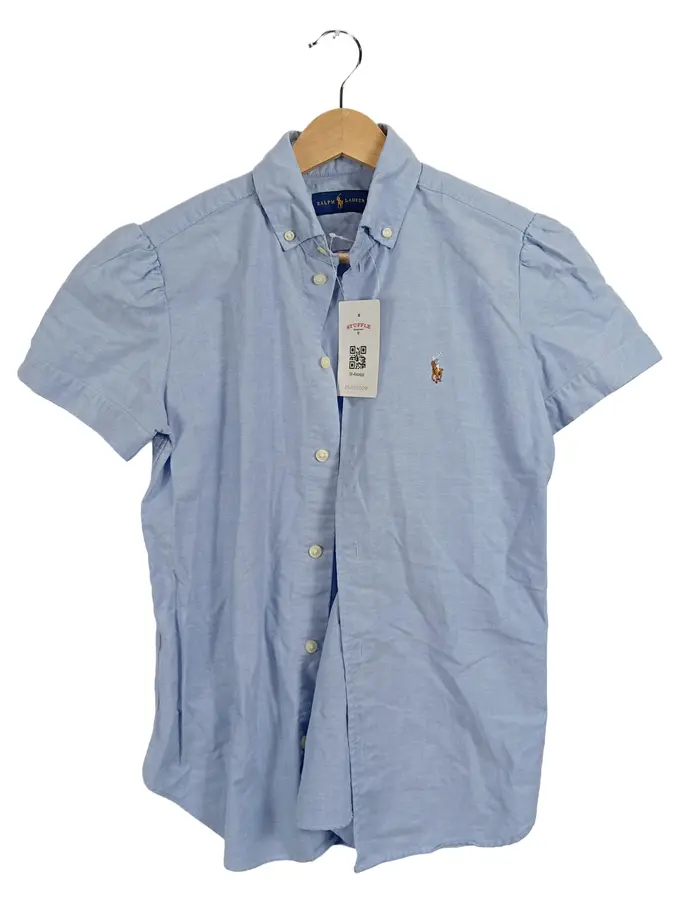 Hemdbluse Damen XS Blau Kurzarm Oxford Button-Down