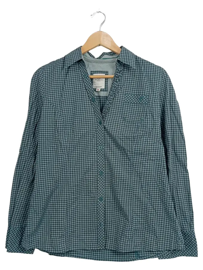 Hemdbluse kariert Grün Gr. 40/L Damen Langarm Baumwolle