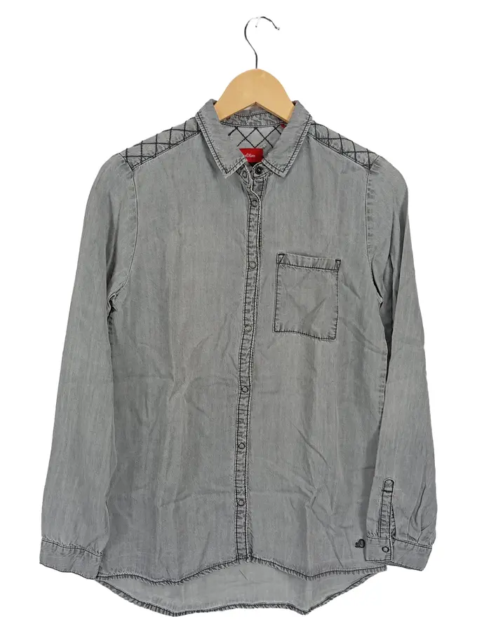 Hemdbluse Kinder Gr. 176 Grau Casual Langarm Lyocell