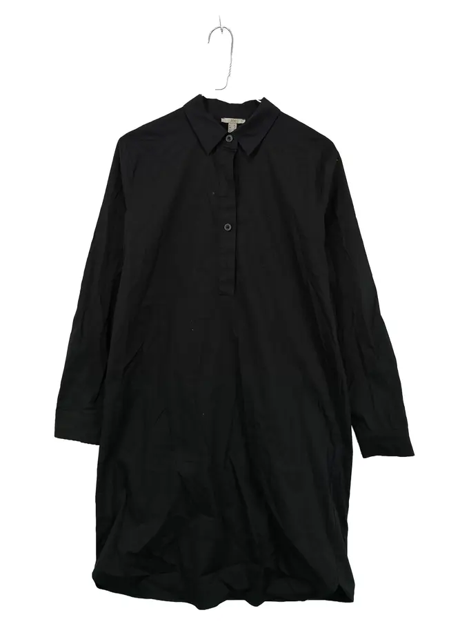 Hemdblusenkleid Damen Gr. 32 Schwarz Baumwolle