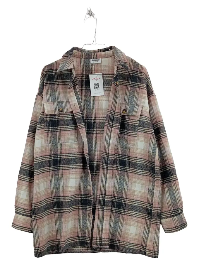 Hemdjacke Damen 34 XS Kariert Pink Shacket Oversized Übergang