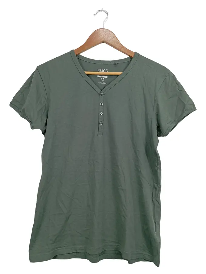 Henley Shirt Herren M Oliv Casual Kurzarm T-Shirt