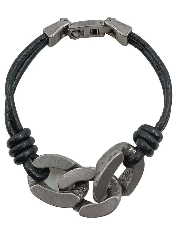 Herren Armband Leder Edelstahl Glieder Schwarz Urban