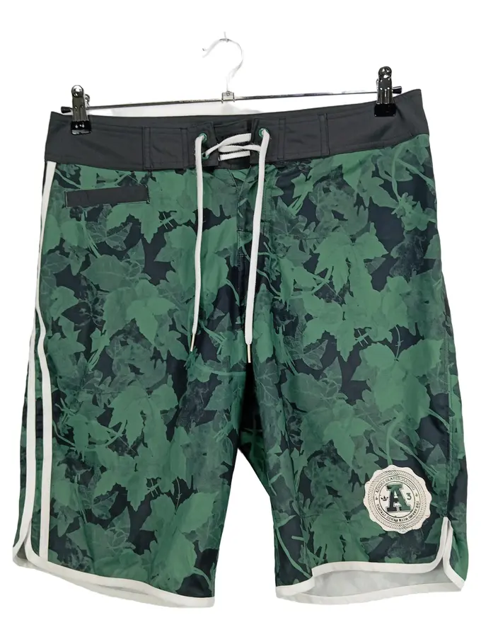 Herren Badehose Gr. 32 Grün Florales Muster Sportlich