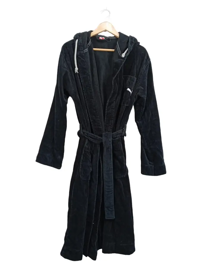 Herren Bademantel Gr. S Schwarz mit Kapuze Baumwolle Sportlich