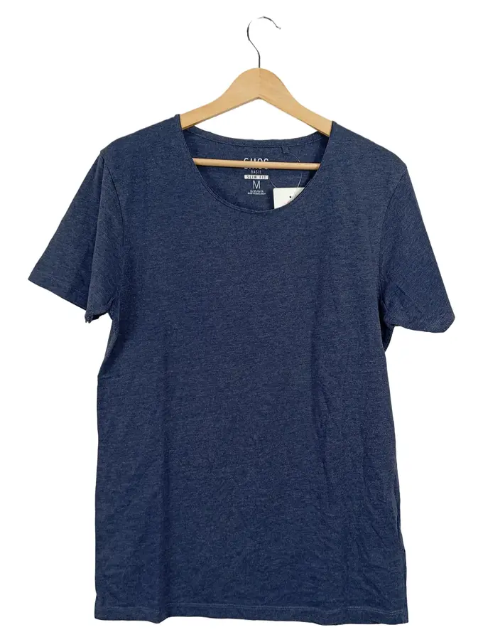 Herren Basic T-Shirt Gr. 48/M Blau Slim Fit