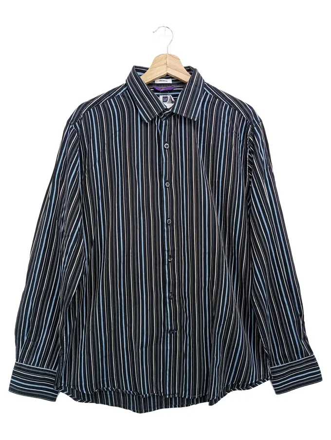 Herren Business Hemd gestreift Langarm Gr. 52/L Baumwolle Mehrfarbig