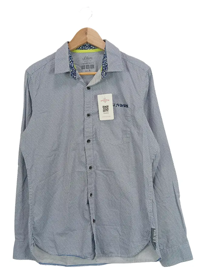 Herren Business Hemd Gr. 48/M Blau Geometrisch Langarm