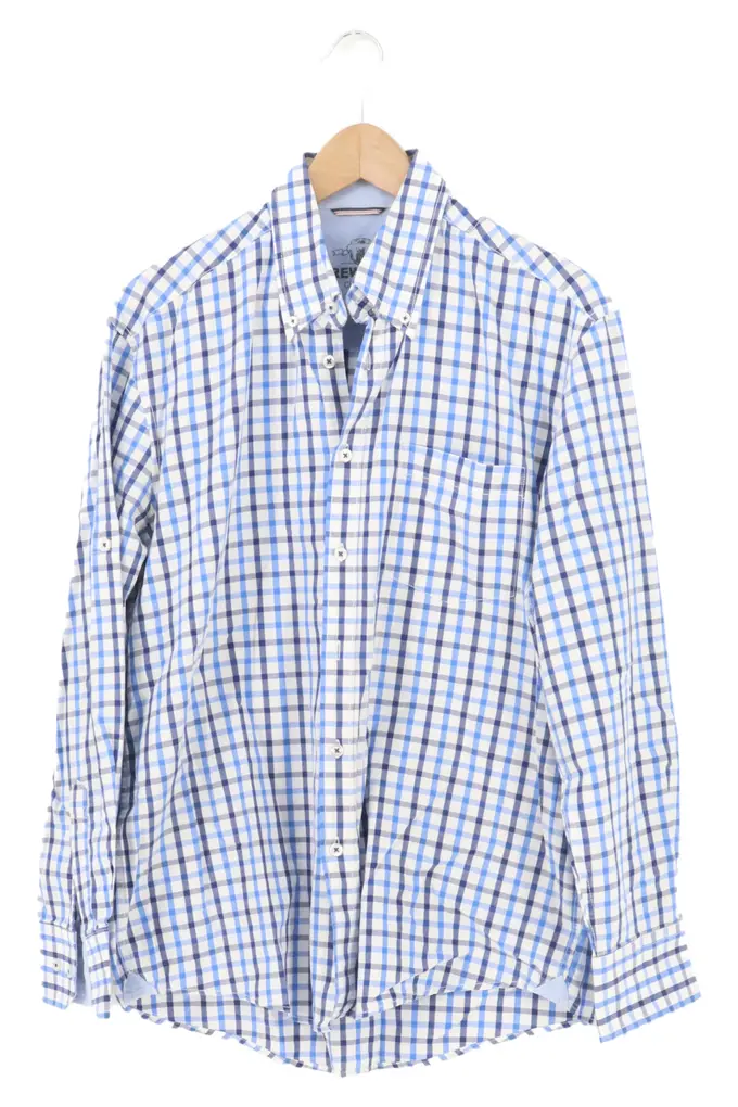 Herren Business Hemd Kariert Blau Gr. 48/M Langarm Baumwolle