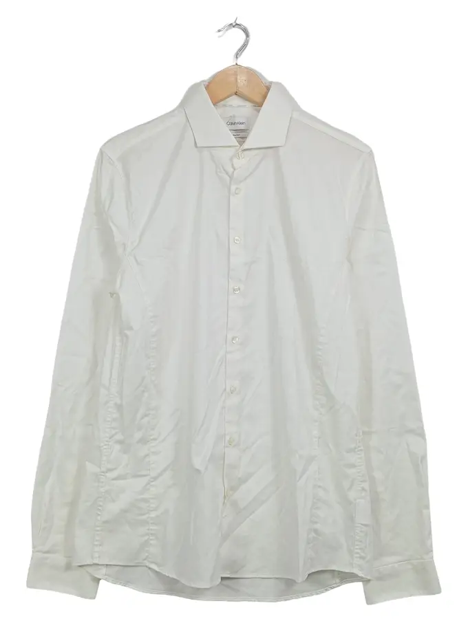 Herren Business Hemd Langarm Uni Weiß Gr. L Baumwolle