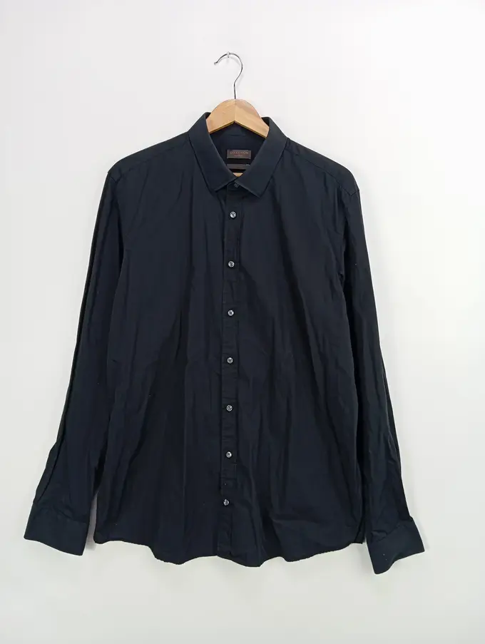 Herren Business Hemd Schwarz Gr. 43/XL Klassisch Langarm