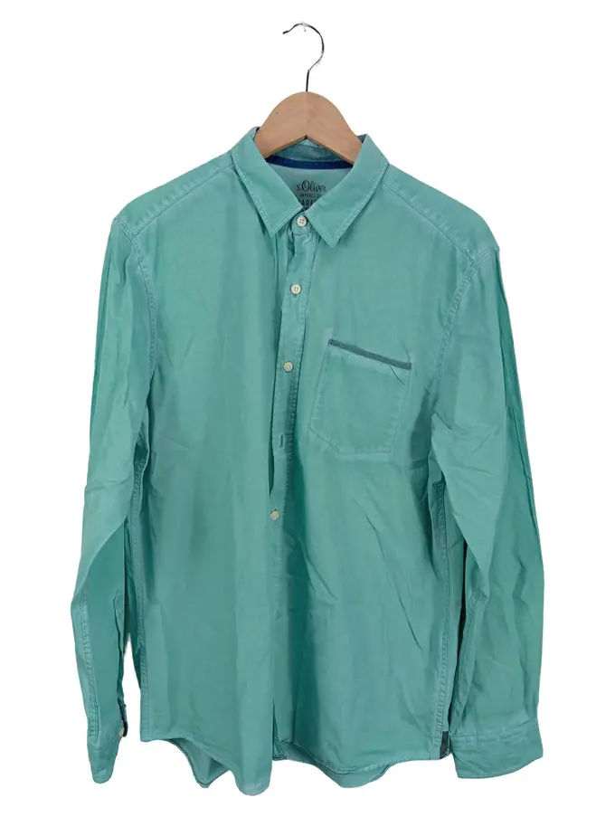 Herren Freizeithemd Casual Langarm Türkis Gr. 50/L Baumwolle