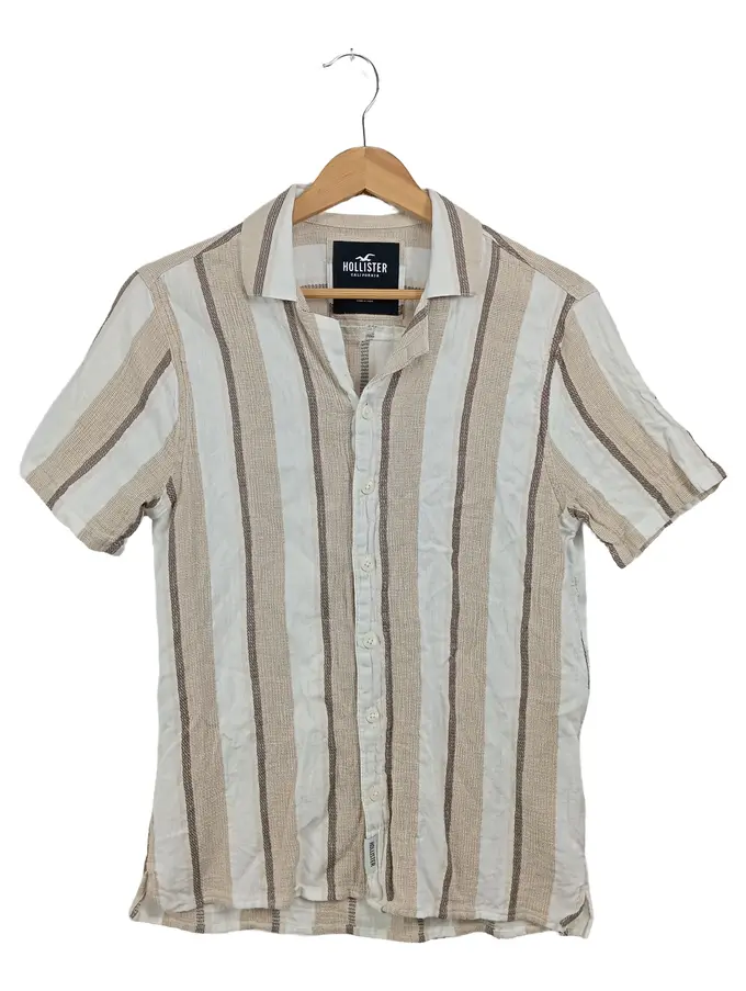 Herren Freizeithemd gestreift Gr. 44/XS Baumwolle Leinen Beige