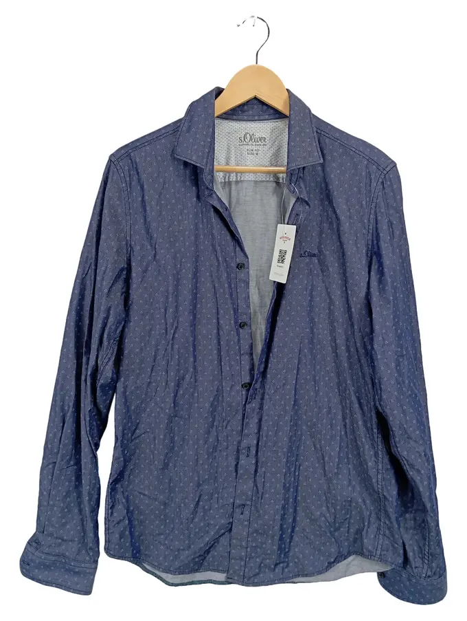 Herren Freizeithemd Gr. M Blau Slim Fit Langarm Hemd