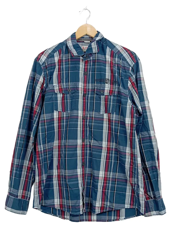 Herren Freizeithemd Kariert Blau Langarm Baumwolle Gr. M