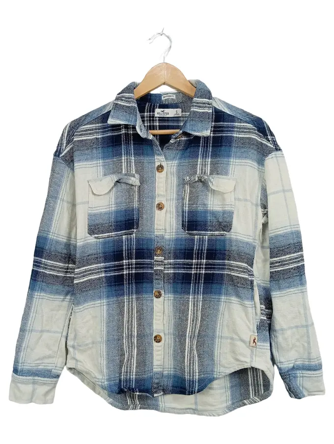 Herren Freizeithemd Kariert Blau Langarm Baumwolle Gr. S