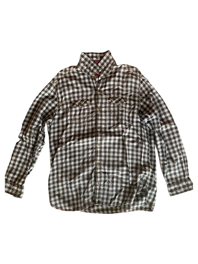 Herren Freizeithemd Kariert Braun Weiß Gr. XL