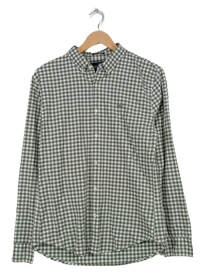 Herren Freizeithemd Kariert Gr. S Grün Weiß Muscle Fit
