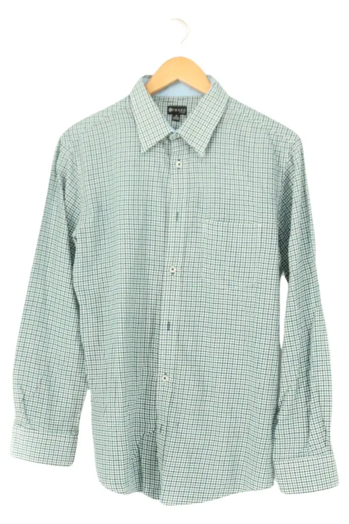 Herren Freizeithemd Kariert Grün Gr. 40 Langarm Klassisch