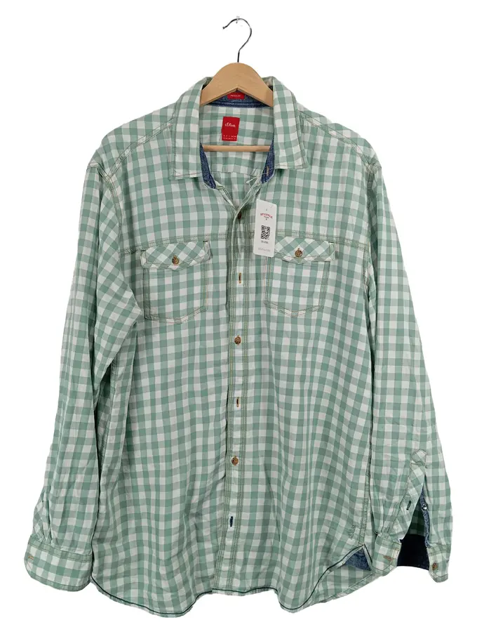 Herren Freizeithemd Kariert Grün Weiß Gr. XL Regular Fit