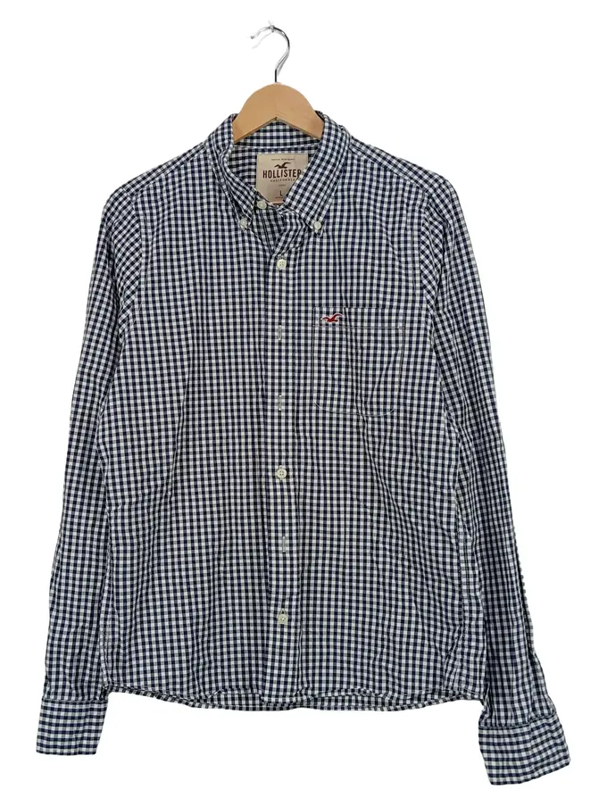 Herren Freizeithemd Kariert Langarm Blau Weiß Gr. L