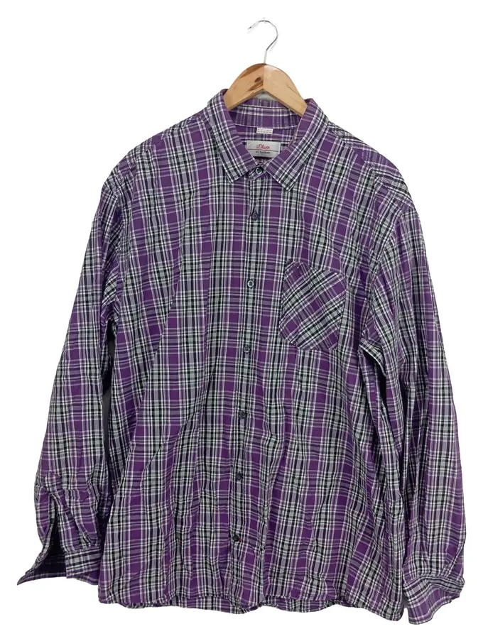 Herren Freizeithemd Kariert Lila Langarm Gr. 54/XXL Baumwolle
