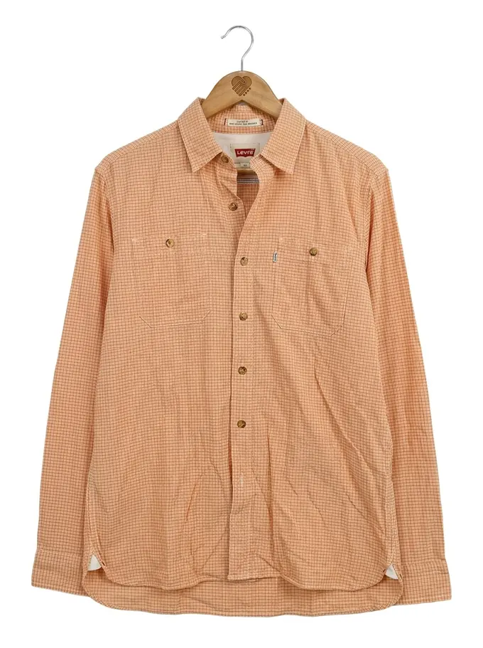 Herren Freizeithemd kariert Orange Gr. 48/M Baumwolle Langarm