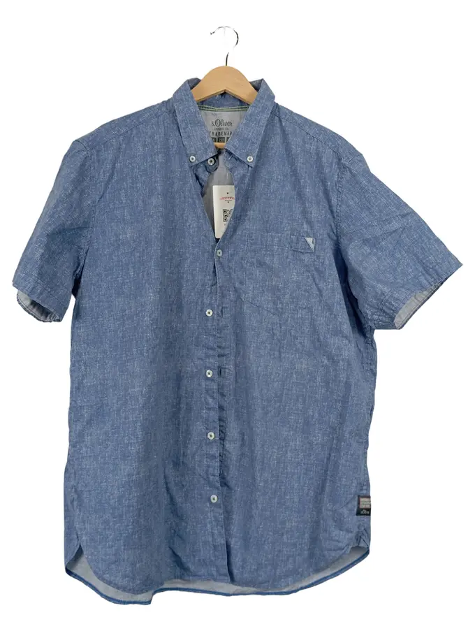 Herren Freizeithemd Kurzarm Blau Gr. 42 Casual Baumwolle
