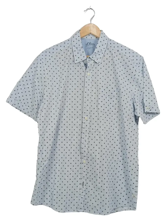 Herren Freizeithemd Kurzarm Gr. L Blau Gepunktet Baumwolle