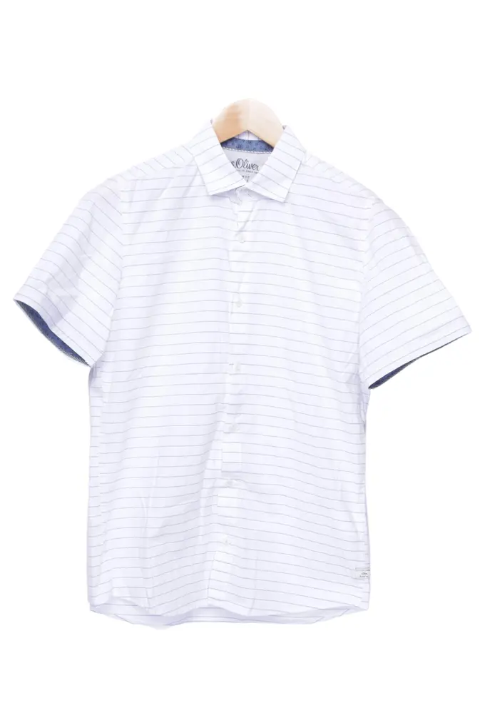 Herren Freizeithemd Kurzarm Hemd Gr. 46/S Weiß Gestreift Casual