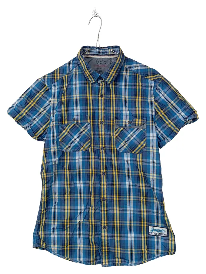 Herren Freizeithemd Kurzarm Kariert Blau Gelb Gr. S