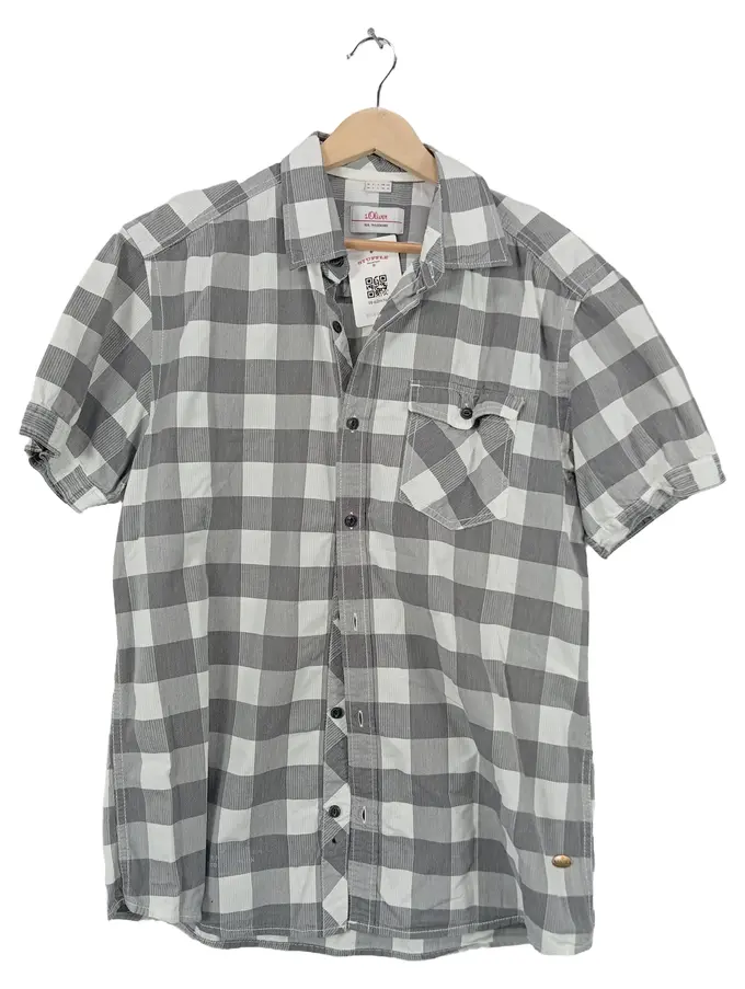 Herren Freizeithemd Kurzarm Kariert Grau Weiß Gr. M Regular Fit