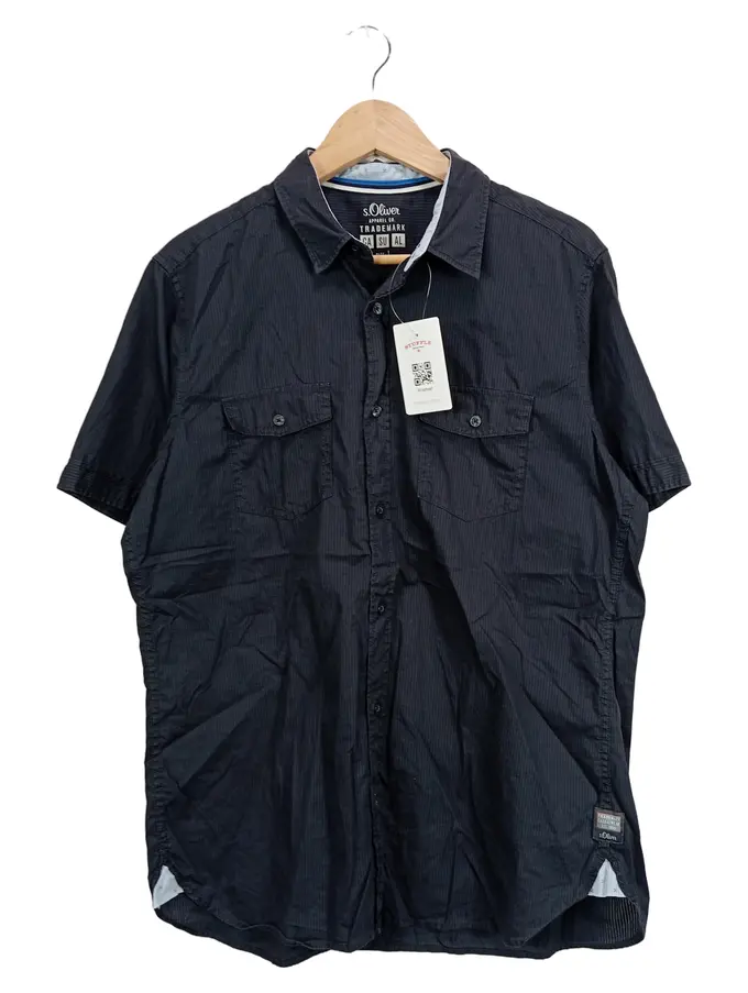 Herren Freizeithemd Kurzarm L 50 Schwarz Gestreift Casual