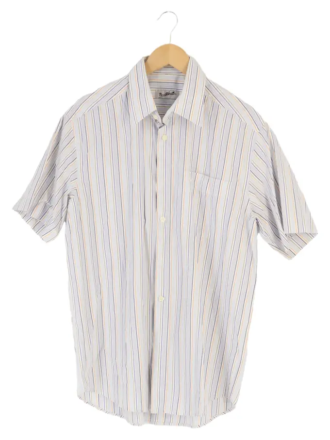 Herren Freizeithemd L/50 Gestreift Kurzarm Weiß Klassisch