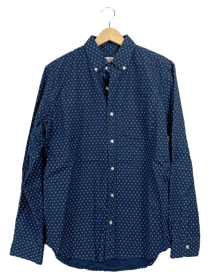 Herren Freizeithemd Langarm Baumwolle Punkte Blau Gr. S