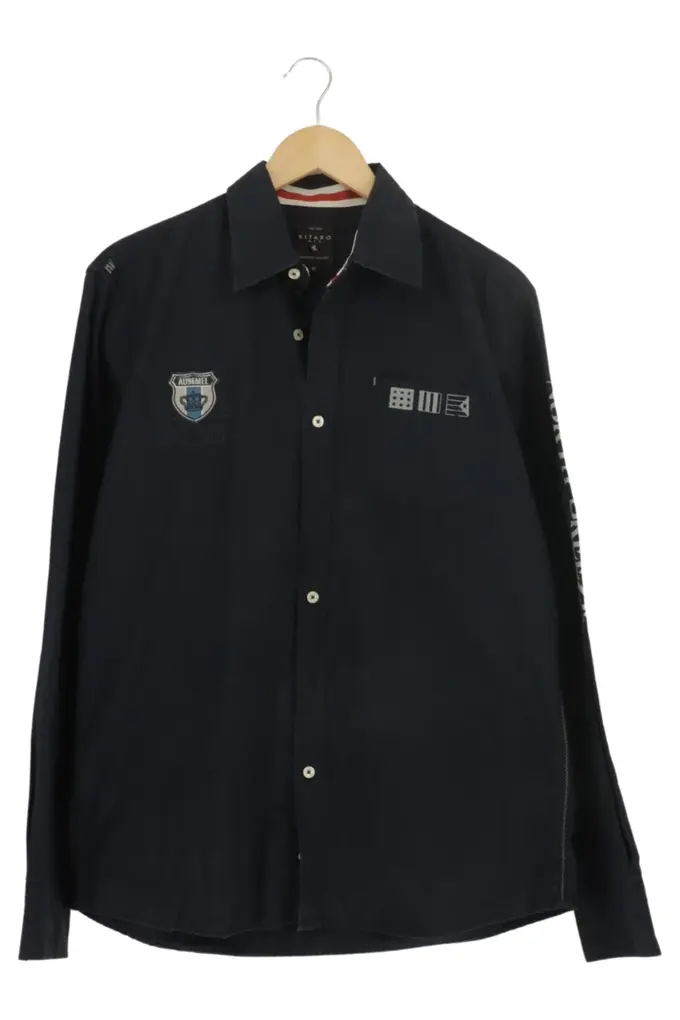 Herren Freizeithemd Langarm Blau Gr. 50/L Casual Baumwolle
